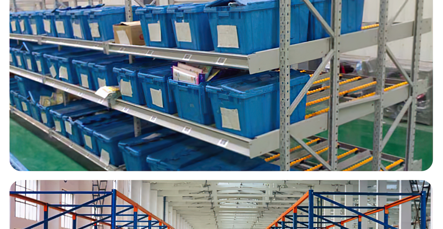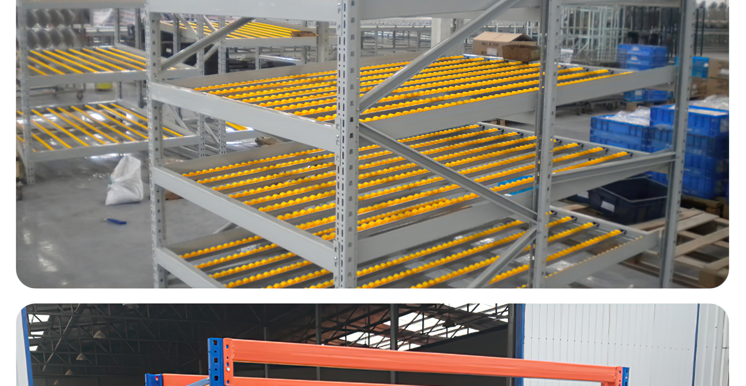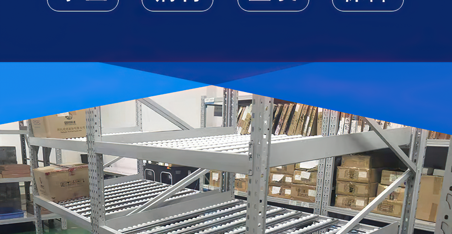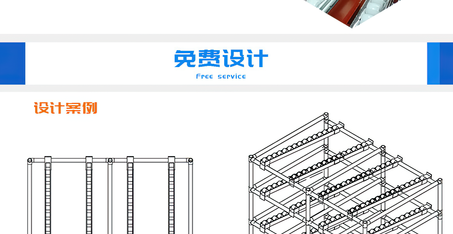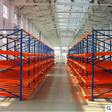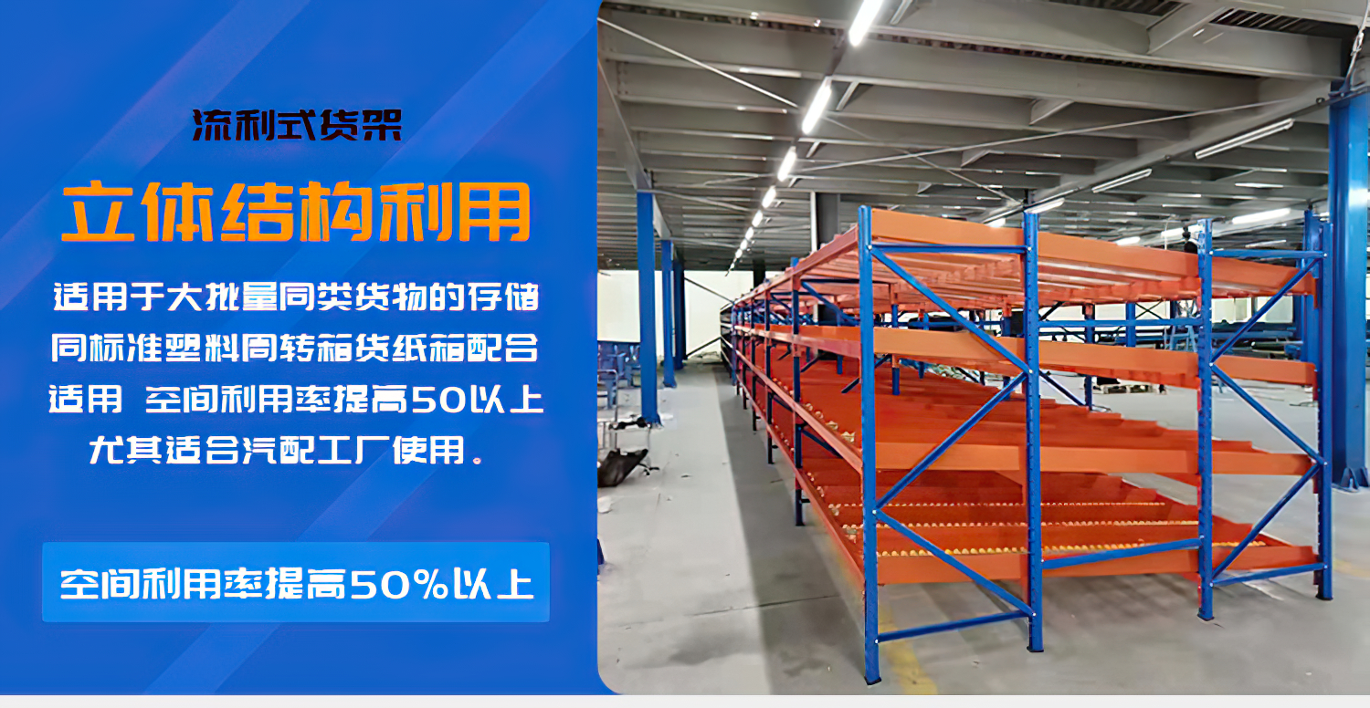 流利式貨架的流利條直接連接到前后橫梁及中間支撐梁上,橫梁直接掛在支柱上,流利條安裝傾斜度取決于貨箱的尺寸、重量以及流利架的深度,通常取5%~9%。流利條滾輪的承載力為6kg/只,當(dāng)貨物較重時,可以在一個滾道安裝3-4根流利條。通常在深度方向上每隔0.6m安裝一根支撐梁以增加流利條的剛度。當(dāng)滾道較長時,可用分隔板將滾道隔開。取貨端需安裝制動片使貨物減速,降低沖擊。
